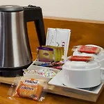 Controle de temperatura, juntamente com máquinas de café/chá, proporcionam conveniência no sala do hotel.